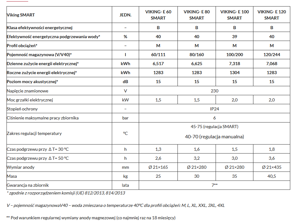 Podgrzewacz wody VIKING SMART to urządzenie ciśnieniowe wyposażone w zaawansowany elektroniczny regulator sterujący, optymalizujący pracę podgrzewacza, a także poprawiający komfort i oszczędność użytkowania. Regulator SMART oparty jest o „samouczący” algorytm sterujący, który śledzi nawyki użytkowników, dostosowując temperaturę oraz dostępność ciepłej wody w zależności od wymagań domowników. Dostępne pojemności to 60,80,100 i 120 litrów. Posiada system antyzamrożeniowy.