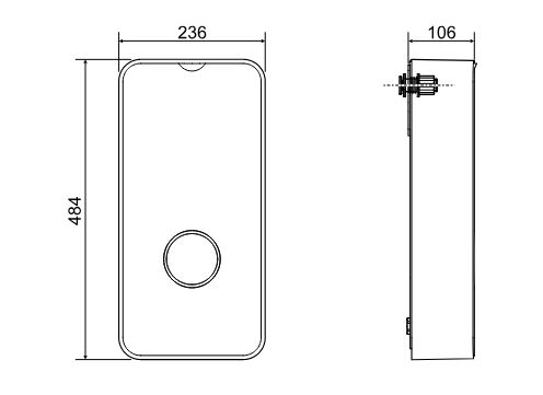 Podgrzewacz wyposażony jest w elektroniczny wyłącznik bezpieczeństwa oraz zabezpieczenie przed ingerencją dzieci (aktywowane przez instalatora). Obudowa o wymiarach 236 x 484 x 106 mm wykonana jest z wysokiej jakości tworzywa sztucznego, a stopień ochrony IP25 zapewnia odporność na wilgoć. Moc przyłączeniowa wynosi 21 kW przy napięciu znamionowym 400 V. Urządzenie posiada przyłącza zimnej i ciepłej wody o średnicy nominalnej 1/2 cala (15) z gwintem wewnętrznym.