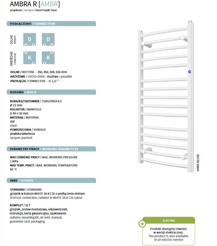 Grzejnik łazienkowy Ambra R AMBRA-50/120 INSTALPROJEKT