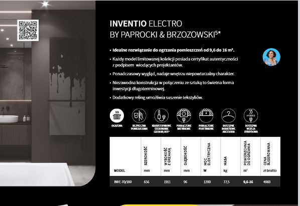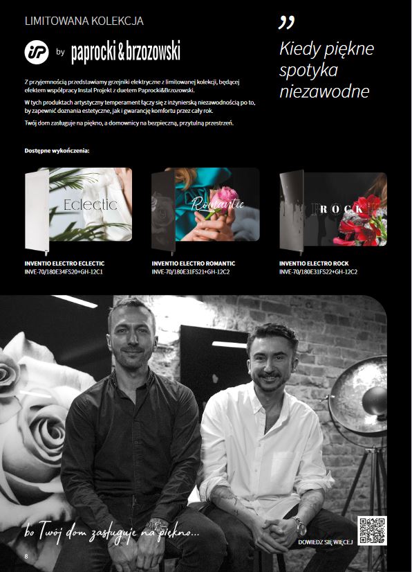Szukasz do swojego domu czegoś absolutnie wyjątkowego? Poznaj grzejnik dekoracyjny INVENTIO ELECTRO ECLECTIC. Dostępny teraz w wariancie elektrycznym. To model z limitowanej kolekcji będącej efektem współpracy niezawodnego producenta Instal Projekt oraz duetu projektantów Paprocki&Brzozowski. Inspirowany paryskimi stiukami – szlachetną formą dekoracyjnego tynku. Jest niczym dzieło sztuki. Wprowadza do wnętrza artystyczny temperament i cieszy niezawodnym działaniem. Do produktu dołączamy certyfikat autentyczności z podpisem twórców!