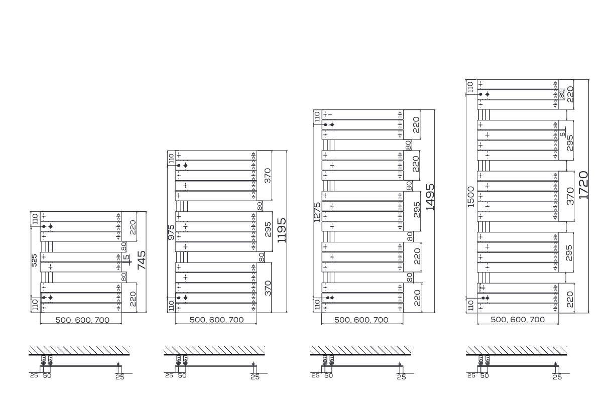 - kolektory pionowe okrągłe o przekroju Ø 30 mm