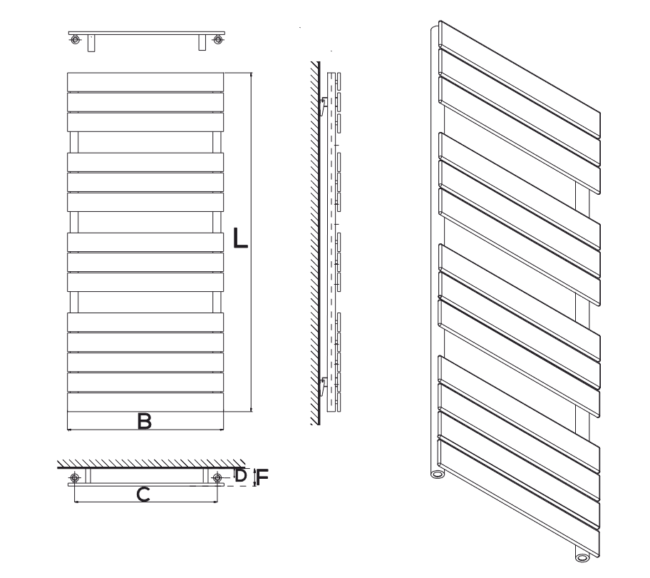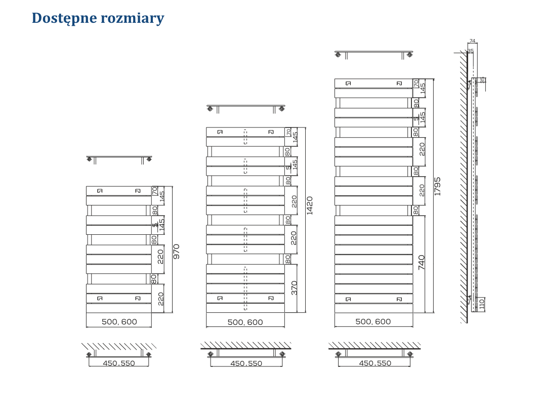 - 4 uchwyty mocujące przyspawane do tylnej części grzejnika