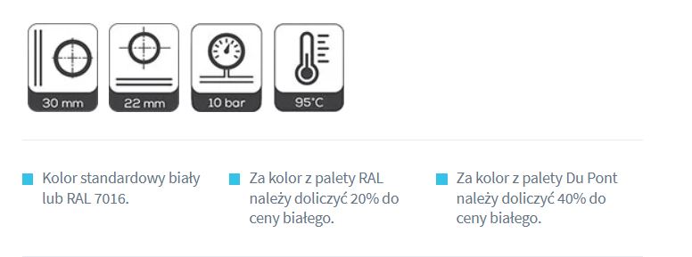 - kolektory pionowe okrągłe o przekroju 30 mm