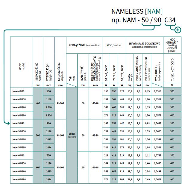 Grzejnik łazienkowy Nameless NAM-50/120C36 INSTALPROJEKT