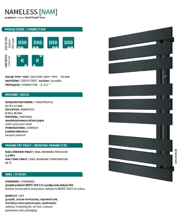 Rozstaw podłączenia dolnego - 50 mm