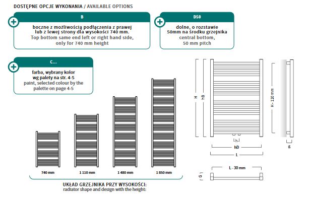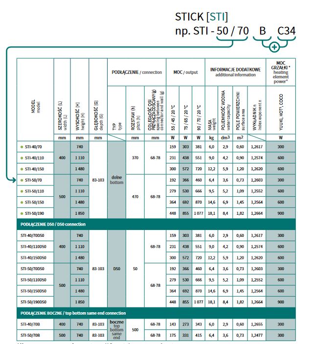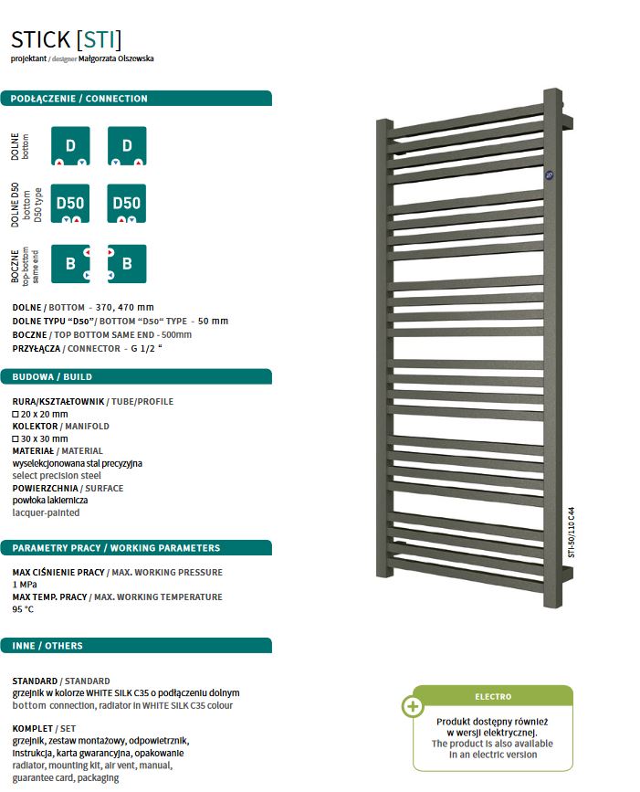 Grzejnik łazienkowy Stick STI-50/70D50C36 INSTALPROJEKT