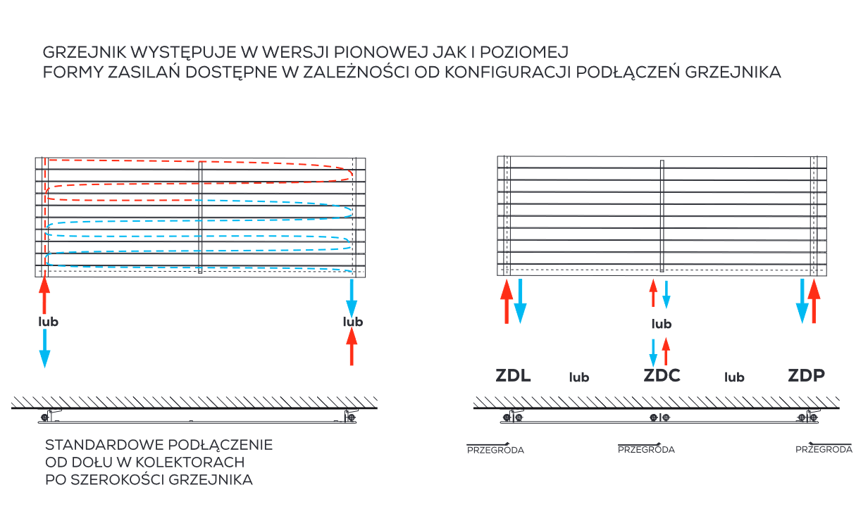 Uniwersalność to słowo, które idealnie opisuje grzejnik VICTORIA. Wersja pojedyncza grzejnika VICTORIA poprzez swoje zaokrąglone panele, doskonale sprawdzi się w pokoju dziecka, zapewniając mu bezpieczeństwo. Po dodaniu akcesoriów, typu wieszaki, osłony lakierowane bądź osłony szklane grzejnik wkomponuje się nam idealnie do łazienki, garderoby czy przedpokoju. Grzejnik można wykonać w wersji pionowej i poziomej. Podłączenie można wykonać po prawej lub lewej stronie, jak i na dole.
