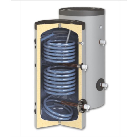Model V2 752 G z dwiema wężownicami, przeznaczony do współpracy z kolektorami słonecznymi oraz wysokotemperaturowym źródłem ciepła.