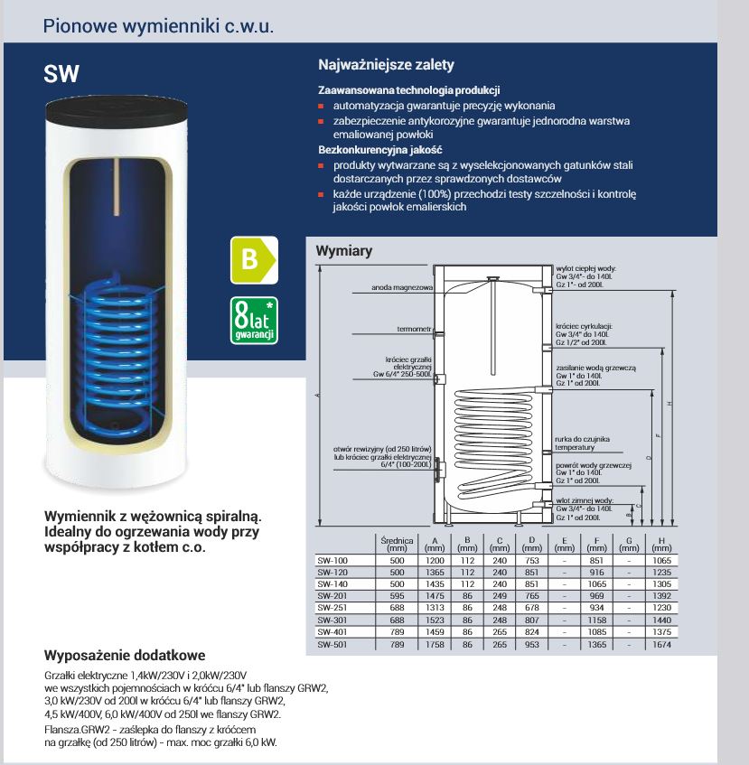 Wymiennik c.w.u. SW-120 TERMO MAX, stojący z jedną wężownicą